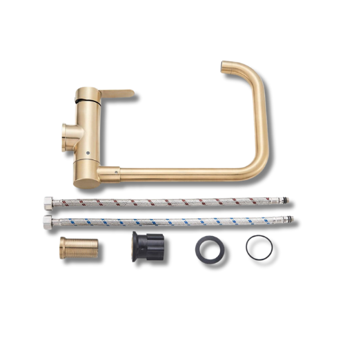 Ce robinet de cuisine rabattable en finition dorée, avec son design en col de cygne, est pensé pour les éviers installés sous une fenêtre. Grâce à son pivot central, il peut se replier facilement afin de libérer l’ouverture de la fenêtre. Sa finition dorée et sa forme élégante en col de cygne s’intègrent harmonieusement dans une cuisine moderne. Conçu pour être pratique au quotidien, il se nettoie simplement et conserve son éclat.